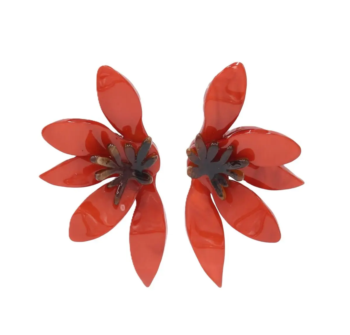 Pendiente en forma de media flor en resina color rojo. Dimensiones 6x4 cm. Peso: 100 g.
